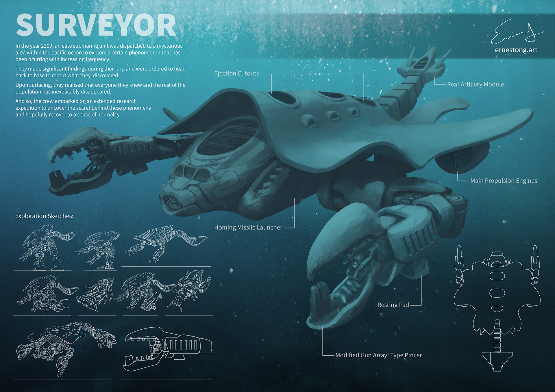 Mecha Design - “Surveyor: Lobster Submarine Unit” (Personal Work)